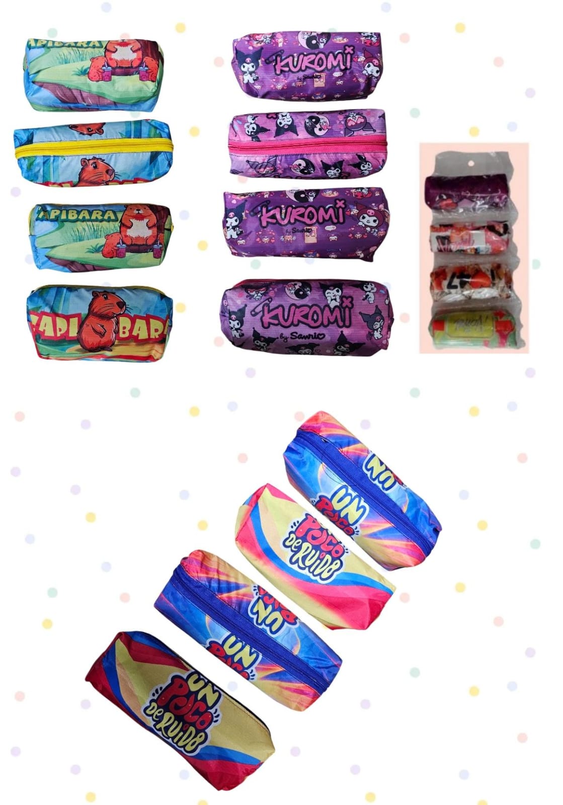 CARTUCHERA KUROMI, KAPIBARA, UN POCO RUIDO x 4 ___