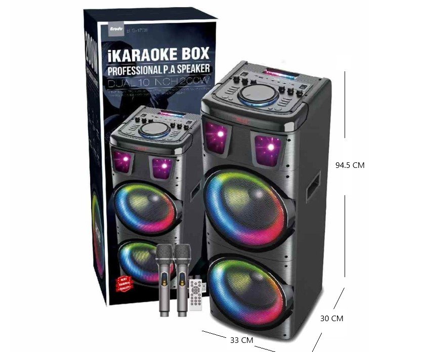 PARLANTE BT CON LUZ 10X2 PLG 200W BTS-1708