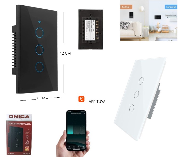 TECLA SMART WIFI TACTIL DE 3 CANALES 1000W